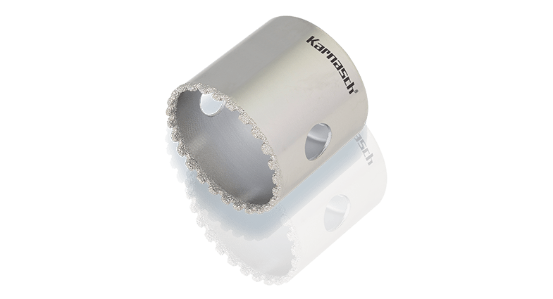 Karnasch hole saws are for machining of HPL, fiber cement boards, wood, mineral materials, ceramics, tiles, porcelain, masonry and glass, with diameters from 14 mm and cutting depths from 38 mm.